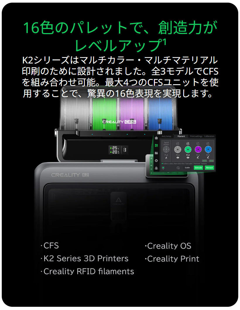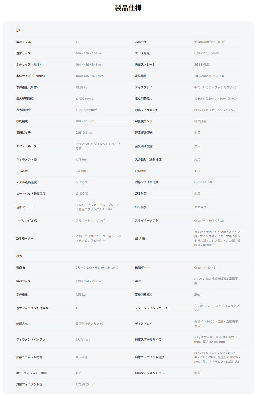 Creality K2Combo 3Dプリンター 印刷速度600mm/s 造形サイズ 260x260x260mm 正規取扱店