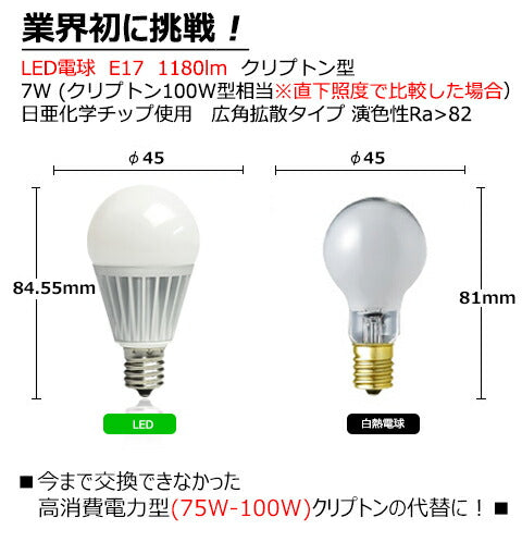 LED電球 E17 ミニクリプトン 300度 電球色 1080lm 昼白色 1180lm LB9917-II ビームテック