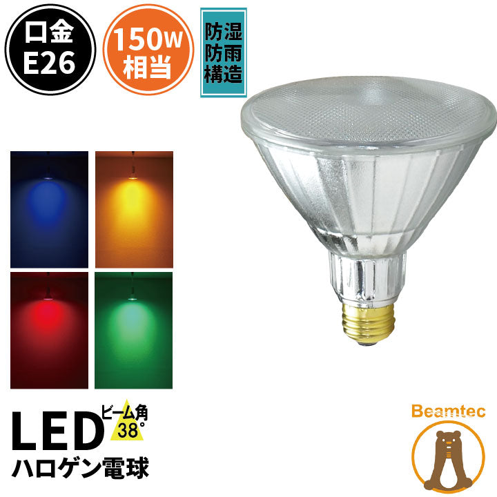 LED スポットライト 電球 E26 ハロゲン 38度 防雨 虫対策 赤 緑 青 橙 LDR17RGBO-W38 ビームテック