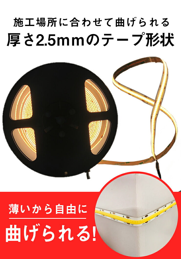 LEDテープライト 5m 電球色 昼光色 COB 面発光 全面発光 カウンタ照明 天井照明 間接照明 看板 棚下照明 ショーケース照明 バーライト LEDイルミネーション LWCOB480 ビームテック