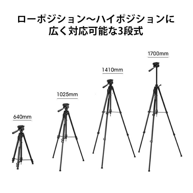 三脚 伸縮式 170cm 3段 ビデオカメラ コンパクト 一眼レフ 軽い 雲台 クイックシュー レバーロック 水平器付き TRIPOD-170 ビームテック