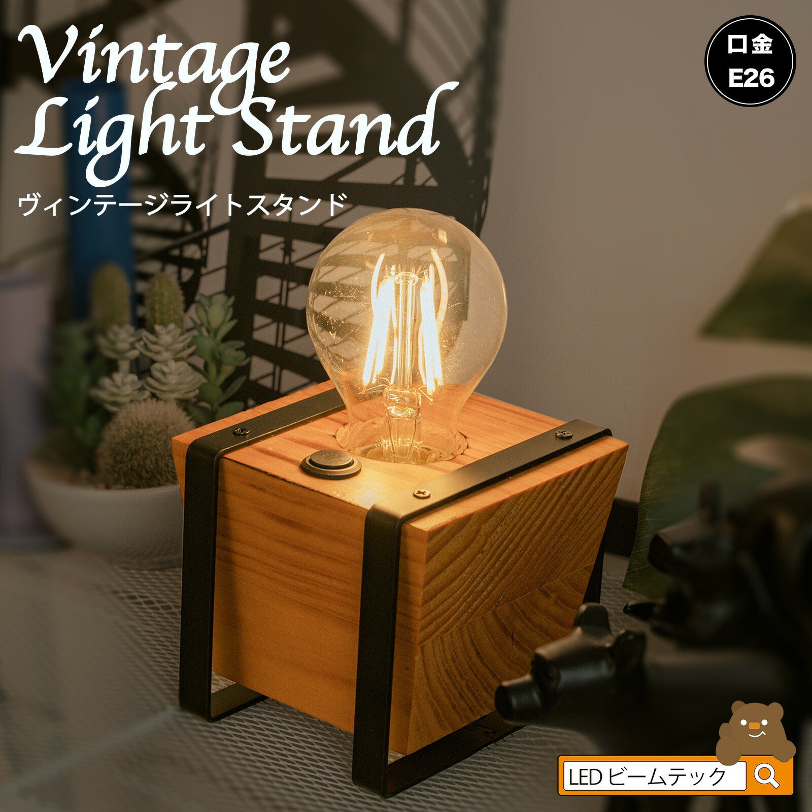 テーブルライト おしゃれ インテリアライト ナイトスタンド 天然木 ヴィンテージ 北欧 ウッド シンプル 卓上 ライト ベッドサイド ランプ 間接照明 VINTWOODE26